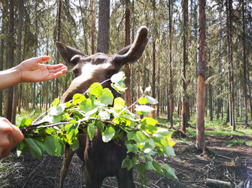 Wir möchten Elche sehen! Die vielen Elchtafeln am Strassenrand haben uns zwar mehrmals vorgewarnt, jedoch ist uns noch kein Grosshirsch über den Weg gelaufen. Wir entscheiden uns, also in einem Elchpark die urzeitlichen Tiere etwas besser kennenzulernen. Es ist schon ein Erlebnis, wenn man um die Ecke biegt und so ein Elch dann plötzlich vor einem steht, mit seiner langen Schnauze, seinen hohen Beinen und mit Fell so braun, dass er auch noch in kurzer Distanz nur schwer von den umgebenden Bäumen zu unterscheiden ist. Ein perfekt getarntes Meisterwerk der Evolution. Der junge Guide ist einfach toll und während wir die Elche füttern, streicheln und von ganz nahe beobachten dürfen erzählt er uns nicht nur spannende Fakten zum Elch (wer hat schon gewusst, dass die schwerfällig ausschauenden Tiere bis zu zwei Meter springen können, und das aus dem Stand, oder dass selbst Bären einer Elchkuh mit Jungen unterlegen sind? Oder habt ihr schon mal was vom Geisterelch gehört? Googelt ihn, ein wahrlich magisches Wesen), er erklärt auch ganz detailliert, wie, wann und wo man Elche in freier Wildbahn am besten beobachten kann. Ein mega Erlebnis, das uns bestimmt noch lange in Erinnerung bleiben wird und von nun an unser "neues Chamäleon" des Nordens, denn so einen Elch in der freien Wildbahn anzutreffen, das wollen wir unbedingt versuchen!