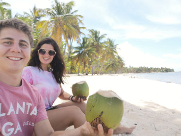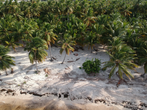 Statt den Pneu zu reparieren geben sie uns ein anderes Auto, zum Glück mit unzähligen Schäden, worüber wir wirklich froh sind, denn man weiss ja nie was kommt. Nachdem wir uns nun mit den Strassenverhältnissen bekannt gemacht haben schliessen wir noch eine etwas bessere Versicherung ab, die alle Eventualitäten abdeckt. Auf dem Rückweg versuchen wir erneut, einen öffentlich zugänglichen Strand zu finden. Als wir bei den Einheimischen nachfragen setzt sich ein junger Mann kurzerhand zu uns ins Auto und navigiert uns zu einem kleinen Hafen, wo Einheimische Billard spielen während die Frauen sich draussen die Haare waschen. Hier verabschiedet er sich von uns und es dauert keine 10 Sekunden bevor wir von Männern umzingelt sind, die uns versuchen eine Tour, einen Ausflug oder eine Parkgebühr aufzuschwatzen. Bloss weg hier. Nach weiteren drei Anläufen finden wir dann tatsächlich einen «Beach Club», der uns nach Aufnahme der Personalien und Nummernschild tatsächlich reinlässt. Am Strand steht ein Schild, das uns darauf aufmerksam macht, dass wir nun den Club verlassen und dieser keinerlei Verantwortung übernimmt, für das was ausserhalb der Tafel passiert. Hoppla, sollen wir das wirklich wagen? Wir spazieren im paradiesischen Palmenwald und geniessen einfach nur die einsame Umgebung. Ein junger Mann mit Machete fragt uns, ob wir Kokosnüsse wollen und als wir uns über den Preis einig sind, klettert er kurzerhand die Palme hinauf, schlägt uns zwei runter und öffnet sie für uns. So gefährlich scheint das hier gar nicht und wir entscheiden uns, am nächsten Tag nochmals hierherzukommen, mit den Hunden, die hier hoffentlich endlich mal wieder richtig rennen können.