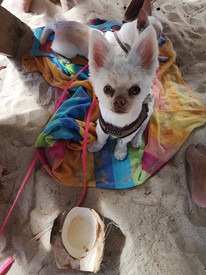 In einer kleinen Strandbeiz schlürfen wir Kokosnüsse, sitzen unter Palmen und geniessen die tolle Atmosphäre! Bereits um halb zehn tauchen die ersten Massen-Touristen in ihren Strand-Buggies auf. Sie schiessen Selfies mit angeketteten Äffchen, wovon eines dann tatsächlich ausbüchst und schnurstracks auf unsere Hunde zu rennt. Leider war der «Besitzer» schneller und das arme Äffchen konnte seiner Gefangenschaft nicht entkommen. Uns tun sie einfach nur leid und wir wandern weiter der Küste entlang, kämpfen uns durch einen kleinen Dschungel und finden tatsächlich ein menschenverlassenes Strändli unterhalb der Klippen.