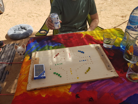 Wir ärgern uns ein wenig, keine Spiele mitgebracht zu haben und basteln kurzerhand unser eigenes DOG. Später testen wir noch unseren Gasofen und finden, dass uns der Gemüseauflauf gar nicht so schlecht gelungen ist. Die Musik dauert übrigens die ganze Nacht und wir fragen uns, wie man das wohl so lange ertragen kann und ob es womöglich etwas mit gewissen Substanzen zu tun haben könnte?