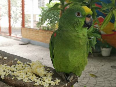 Schliesslich bleiben wir nicht allzu lange, da wir es heute bis San Agustin schaffen wollen. Wir verabschieden uns von den Leuten, die uns die Nacht beherbergt hatten und nehmen die immer schlimmer werdende Strasse nach San Agustin in Angriff. Für die knapp 150 Kilometer brauchen wir beinahe den ganzen Tag. Zwischendurch legen wir einen kleinen Frühstücksstopp am Rande einer Strasse ein, wo wir Lorena, eine wilde Papageiendame, die sich bei diesem Café niedergelassen hat, kennenlernen. Ihr gefällt es hier ziemlich gut und seit sie klein ist, ist sie hier Stammgast. Am liebsten hält sie einen kleinen Smalltalk mit den Gästen oder lacht ganz herzlich mit ihnen mit.